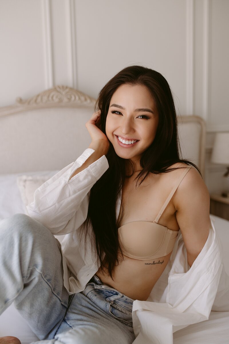 More often than not I am very uncomfortable in my skin. The constant daily struggle with body positivity makes it hard to see myself as a sexy, confident woman is hard AF! Seeing my images for the first time felt like a dream! I couldn’t believe I was the sexy woman staring back at me in the photos and the outfit choices were perfect! Although surprisingly my favourite shots ended up being the nude/white sheet ones where more of my body was on display!